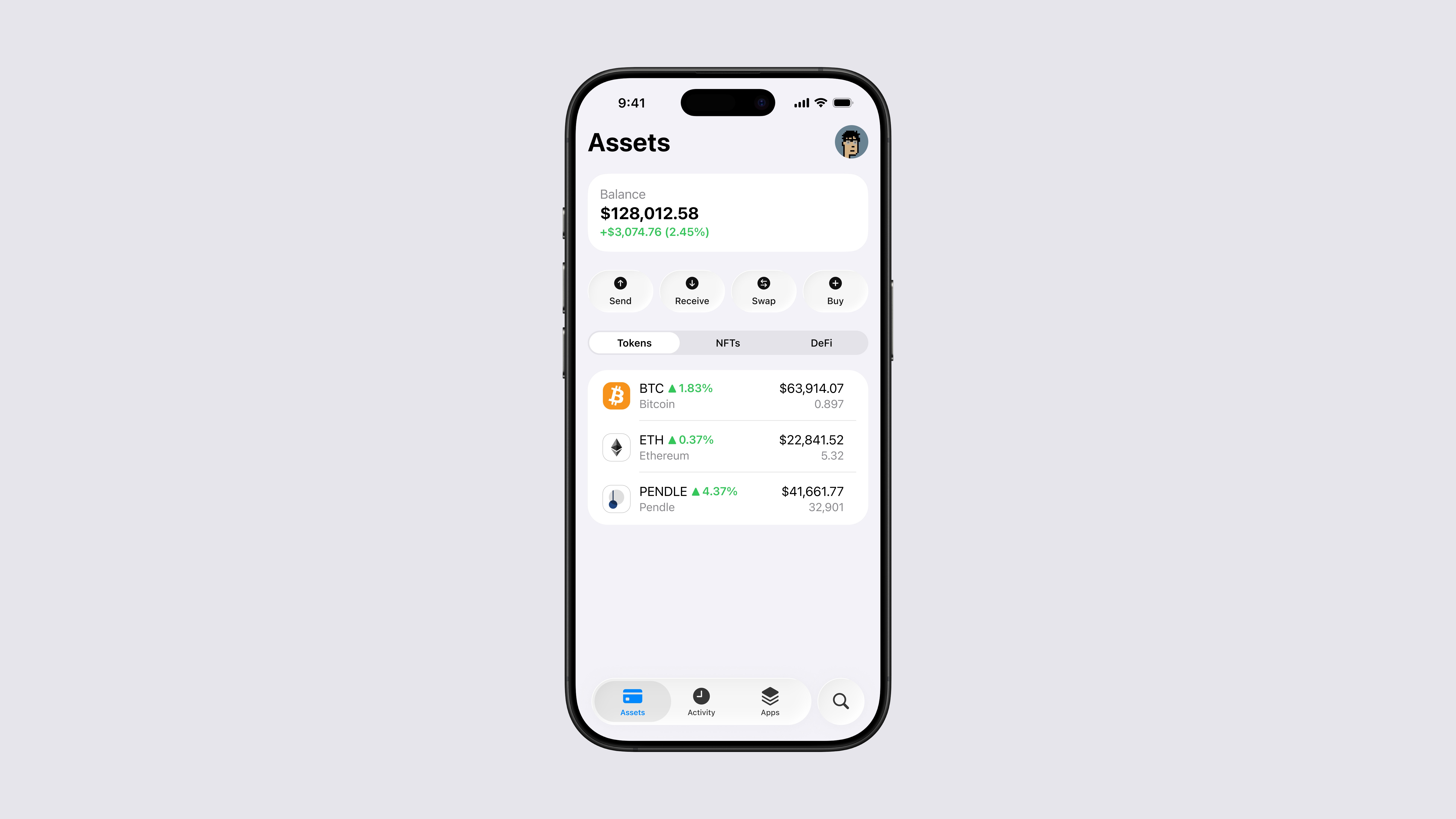 A conceptual crypto wallet built on iOS 26 design principles.